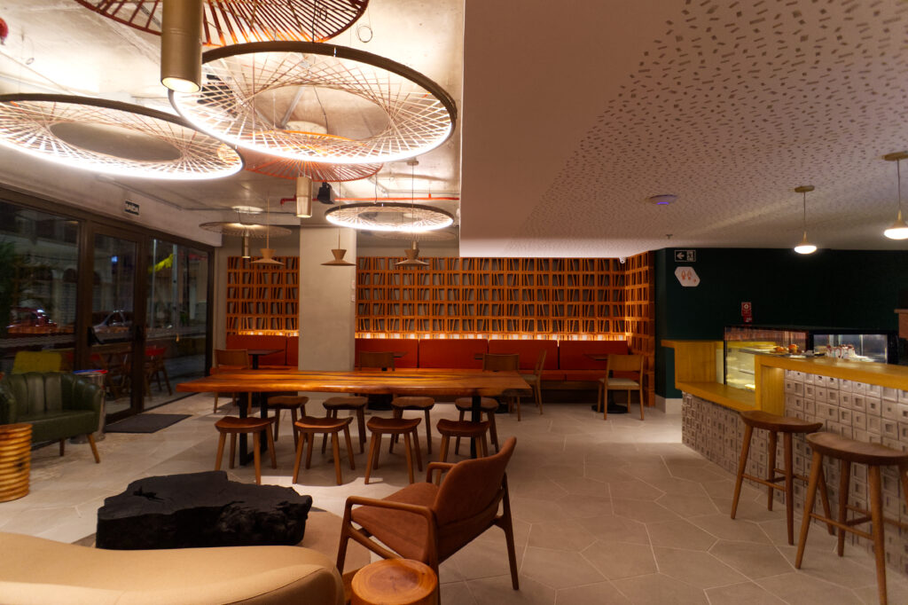 O Árido Café ocupa o térreo, junto ao lobby, com conceito visual inspirado no Sertão e marcado por tons terrosos. “Estamos atendendo um público que vem para reuniões rápidas ou passa a tarde trabalhando. Servimos refeições mais leves e ágeis”, afirma Maria Clara Menezes, gerente de alimentos e bebidas. O funcionamento do café ocorre das 8h às 20h.